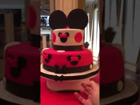 This is a Minnie Mouse Couture birthday and smash cake complete with ears, bows, polka dots, and Disney lettering. All decorations on this cake are edible.